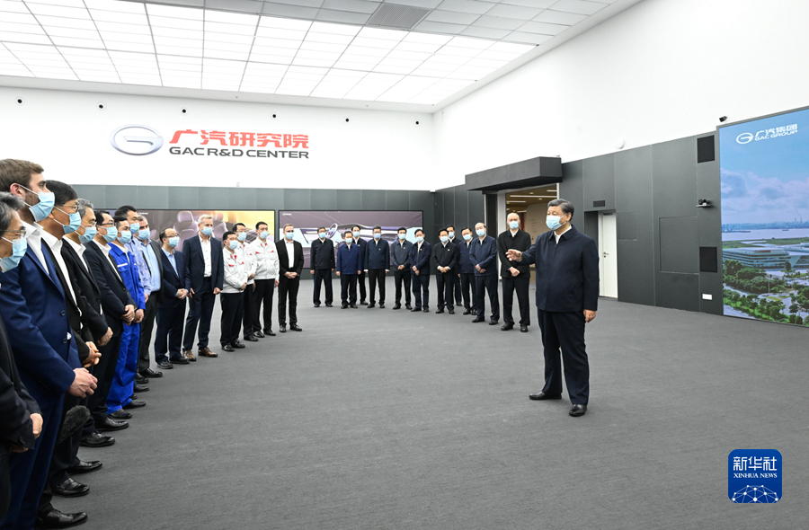 習(xí)近平隨后來(lái)到廣汽埃安新能源汽車股份有限公司考察。他走進(jìn)企業(yè)展廳、總裝車間、電池生產(chǎn)車間等,了解企業(yè)突破關(guān)鍵核心技術(shù)和推動(dòng)制造業(yè)高端化、智能化、綠色化等進(jìn)展情況。在廣汽研究院,習(xí)近平仔細(xì)察看智能網(wǎng)聯(lián)實(shí)驗(yàn)室、模型設(shè)計(jì)實(shí)驗(yàn)室等,并同科技人員、企業(yè)家、職工、外資企業(yè)代表等交流。習(xí)近平指出,中國(guó)改革開(kāi)放政策將長(zhǎng)久不變,永遠(yuǎn)不會(huì)自己關(guān)上開(kāi)放的大門。一切愿意與我們合作共贏的國(guó)家,我們都愿意與他們相向而行,推動(dòng)世界經(jīng)濟(jì)共同繁榮發(fā)展。習(xí)近平強(qiáng)調(diào),中國(guó)是個(gè)大國(guó),要重視實(shí)體經(jīng)濟(jì),走自力更生之路。關(guān)鍵核心技術(shù)要立足自主研發(fā),也歡迎國(guó)際合作。要加強(qiáng)教育和人才培養(yǎng),夯實(shí)科技自立自強(qiáng)根基。