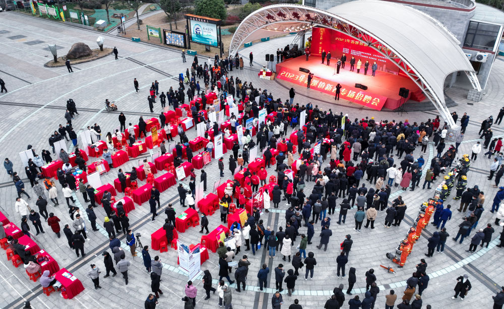 2月4日拍攝的浙江省義烏市蘇溪鎮(zhèn)“百企千崗”新春首場招聘會現場(無人機照片)。新華社記者 徐昱 攝