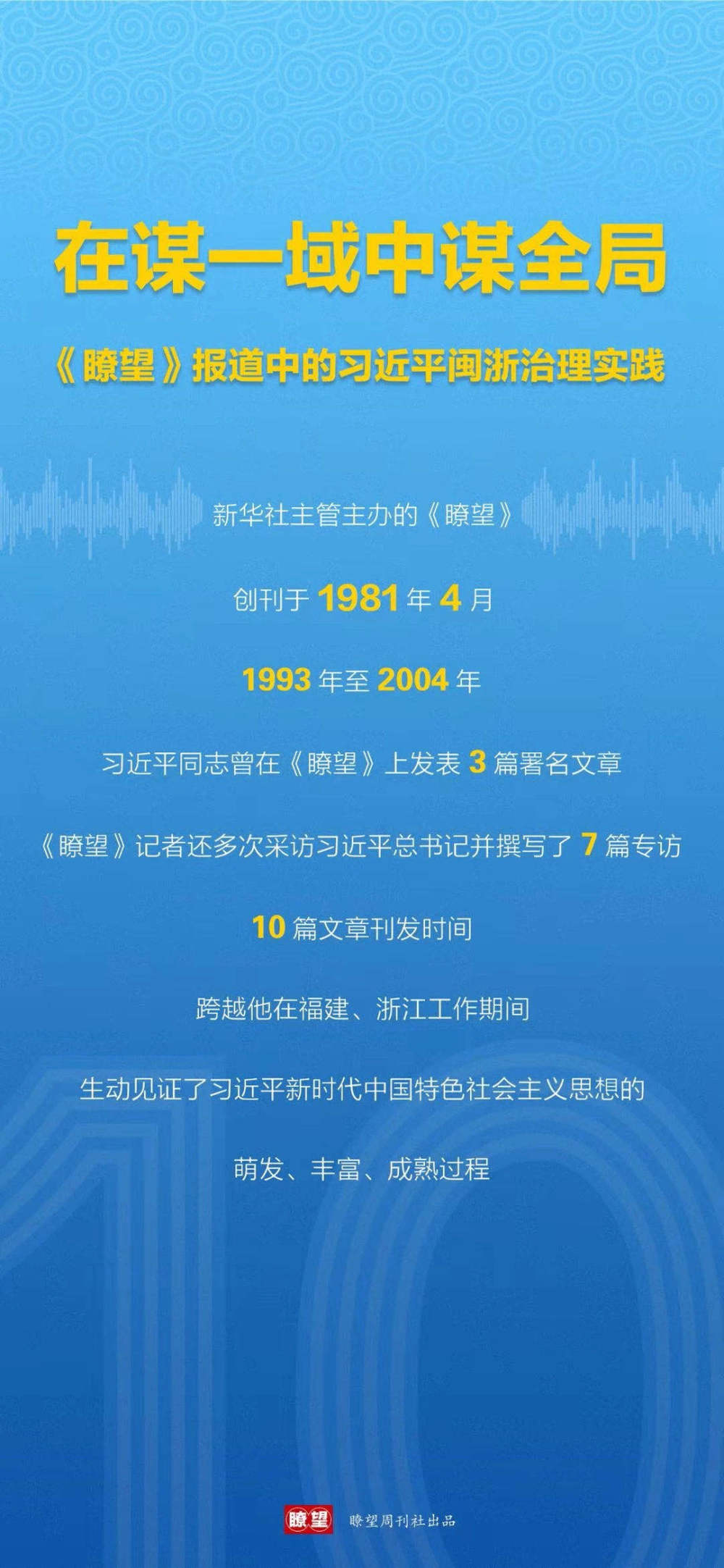創(chuàng)刊《瞭望》40周年之際,編輯部在整理歷年報道時注意到,習(xí)近平總書記在任福建省省長期間曾連續(xù)3年接受《瞭望》獨家專訪。這對一家新聞單位而言極為罕見,充分體現(xiàn)了習(xí)近平同志對新聞宣傳工作的高度重視。
