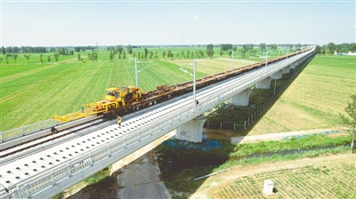 ??記者從中國鐵路鄭州局集團有限公司獲悉,7月12日,隨著最后一組500米長鋼軌在清豐特大橋順利鋪設(shè)到位,濟鄭高鐵濮陽至魯豫省界段高速鐵路正線鋪軌全面貫通,為如期實現(xiàn)開通目標(biāo)奠定了堅實基礎(chǔ)。