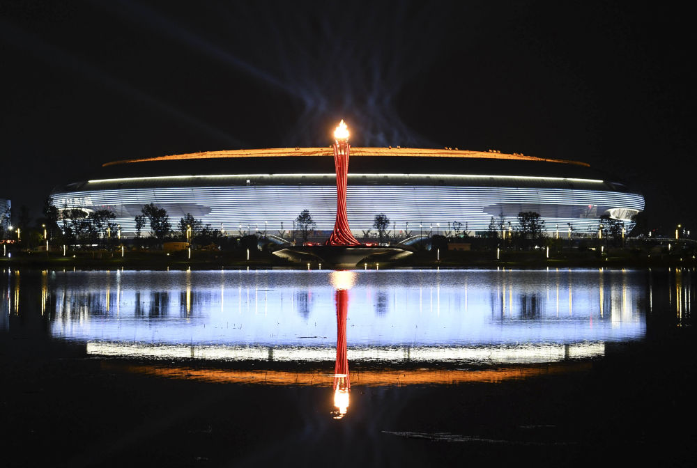 這是2023年7月28日拍攝的第31屆世界大學(xué)生夏季運動會主火炬。新華社記者 張端 攝
