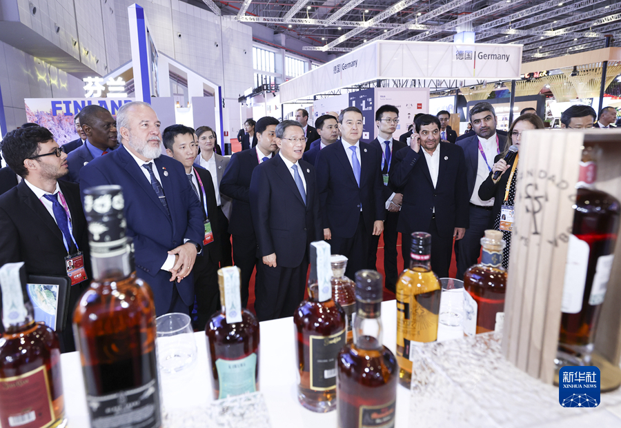 開幕式前,李強參觀了企業(yè)展。開幕式后,李強同與會外國領導人共同巡館。
