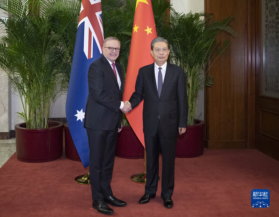 11月6日,全國人大常委會(huì)委員長趙樂際在北京會(huì)見澳大利亞總理阿爾巴尼斯。新華社記者 李濤 攝