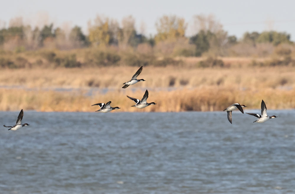 2023年11月12日,在黃河三角洲國家級自然保護區(qū),越冬候鳥在飛翔。新華社記者 徐速繪 攝