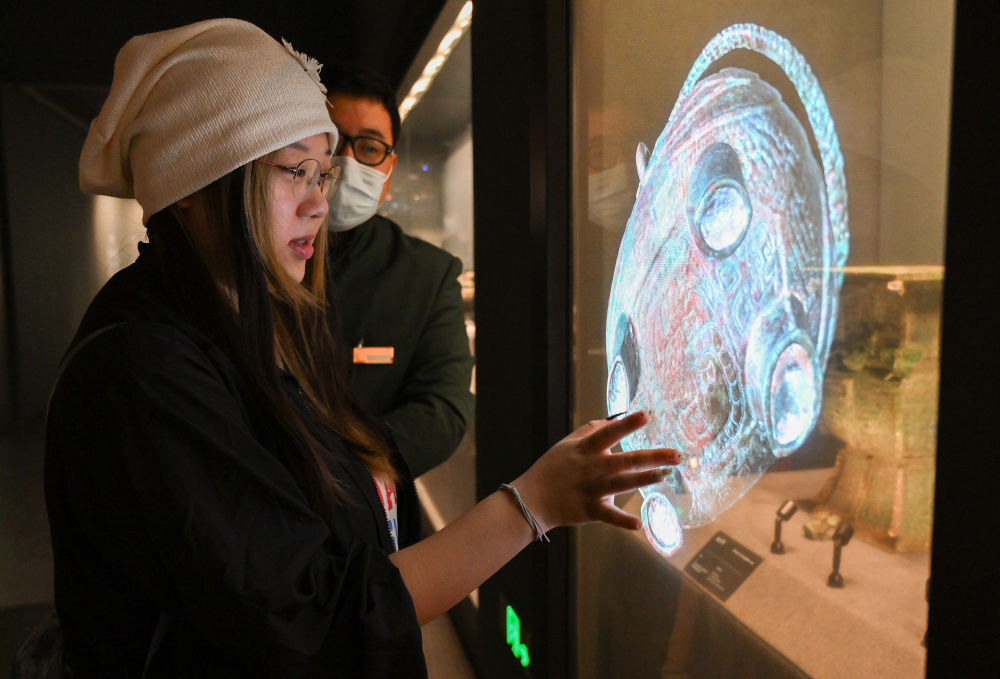 2023年9月15日,觀眾在位于北京奧林匹克公園核心區(qū)的中國考古博物館內(nèi)體驗互動屏幕。新華社記者 李賀 攝