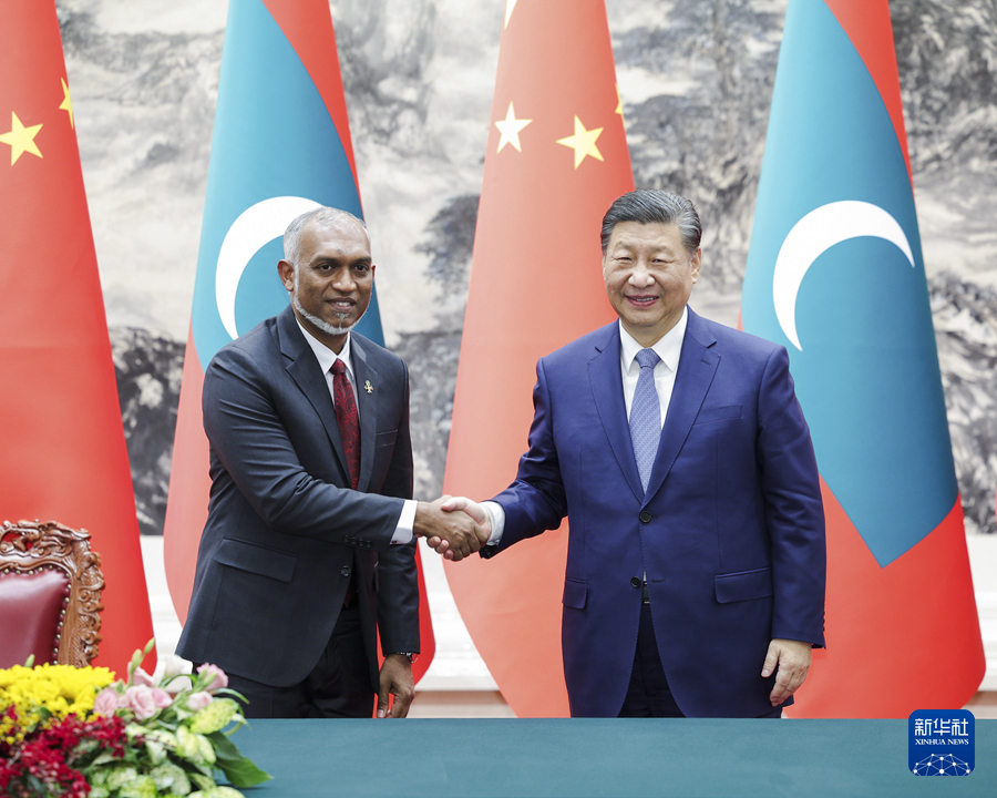 ??1月10日下午,國家主席習(xí)近平在北京人民大會堂同來華進行國事訪問的馬爾代夫總統(tǒng)穆伊茲舉行會談。新華社記者 翟健嵐 攝