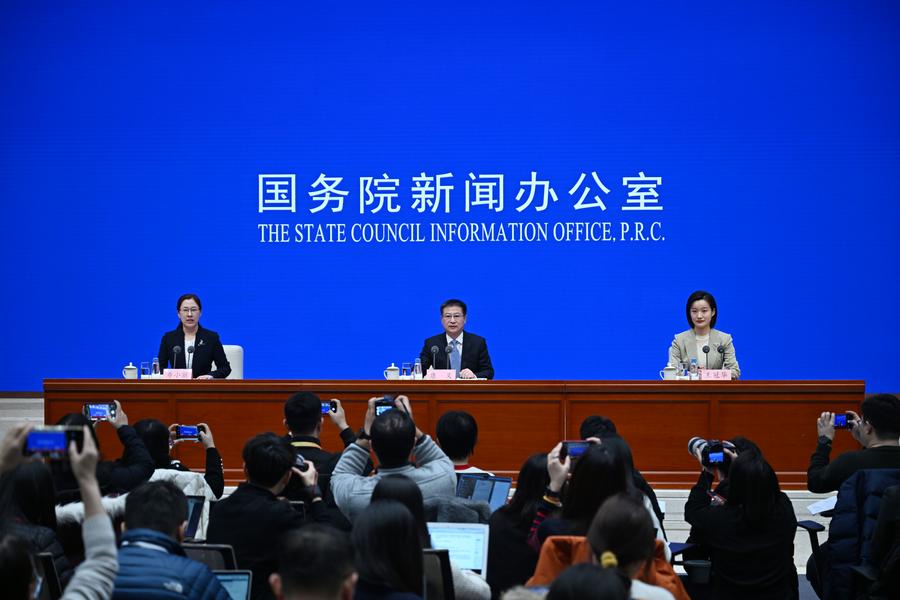??1月17日,國務(wù)院新聞辦公室在北京舉行新聞發(fā)布會,請國家統(tǒng)計局局長康義、國家統(tǒng)計局新聞發(fā)言人王冠華介紹2023年國民經(jīng)濟運行情況,并答記者問。新華社記者 金良快 攝