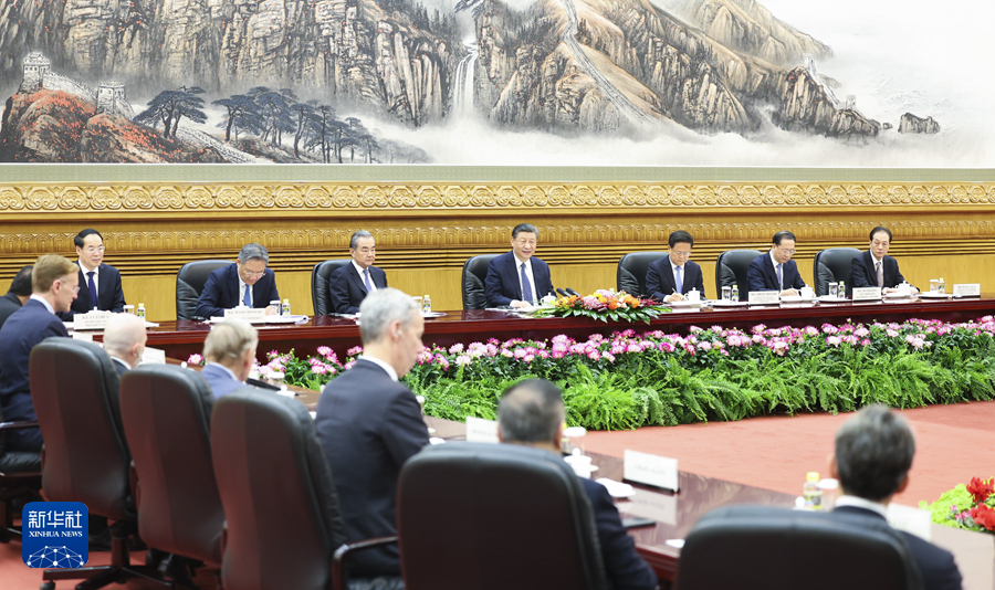 ??3月27日,國家主席習(xí)近平在北京人民大會堂集體會見美國工商界和戰(zhàn)略學(xué)術(shù)界代表。新華社記者 申宏 攝