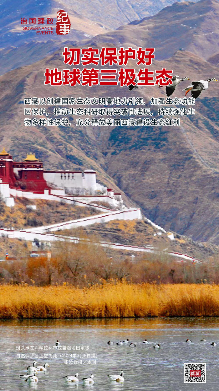 ??◇2021年7月,中共中央總書記、國家主席、中央軍委主席習近平在西藏考察時指出,保護好西藏生態(tài)環(huán)境,利在千秋、澤被天下。要牢固樹立綠水青山就是金山銀山、冰天雪地也是金山銀山的理念,保持戰(zhàn)略定力,提高生態(tài)環(huán)境治理水平,推動青藏高原生物多樣性保護,堅定不移走生態(tài)優(yōu)先、綠色發(fā)展之路,努力建設人與自然和諧共生的現(xiàn)代化,切實保護好地球第三極生態(tài)。 ??◇西藏以創(chuàng)建國家生態(tài)文明高地為引領,加強生態(tài)功能區(qū)保護,推動生態(tài)科研取得突破性進展,持續(xù)強化生物多樣性保護,充分釋放美麗西藏建設生態(tài)紅利。 ??◇2023年底,西藏全區(qū)7市(地)空氣環(huán)境質量平均優(yōu)良天數(shù)比例達99%以上,沙塵天氣大幅減少;主要江河湖泊水質達到或優(yōu)于III類標準,城鎮(zhèn)集中式飲用水水源地水質達標率100%,土壤環(huán)境安全穩(wěn)定,西藏生態(tài)環(huán)境質量保持全國領先水平。 ??◇西藏建立起以國家公園為主體的自然保護地體系,將超過60萬平方公里的國土納入生態(tài)保護紅線,占全區(qū)國土面積的50%以上。 ??◇我國正在推進“三極環(huán)境與氣候變化”國際大科學計劃,聚焦人類共同命運,構建三極科學研究共同體,應對全球氣候變化挑戰(zhàn)。 ??◇“國家公園的建設,有效維護重點野生動物核心分布區(qū)的原真性和完整性?!?/strong> ??◇“我們的工作,就是利用種子或植物活體開展實驗,最終返回原生地栽培,保護好生物多樣性?!?/strong> ??◇“桃花節(jié)”自2002年起舉辦至今,名氣越來越大,吸引著來自五湖四海的游客。如今,嘎拉村村民年人均可支配收入達3.5萬元。 ??◇目前,青藏高原生態(tài)系統(tǒng)碳匯總量為每年1.62億噸,占全國生態(tài)系統(tǒng)碳匯的8%至16%,今后這一比例還將增加。 這里是世界上生態(tài)環(huán)境質量最好的地區(qū)之一,空氣質量與北極地區(qū)相當,土壤環(huán)境總體處于自然本底狀態(tài)。 ??這里是世界上生物多樣性最豐富的地區(qū)之一,中國最高的樹在這里茁壯生長,藏羚羊、黑頸鶴、雪豹、孟加拉虎等野生動物在這里繁衍生息。 ??這里也是生態(tài)脆弱區(qū)、全球氣候變化敏感區(qū),生態(tài)環(huán)境一旦破壞,修復難度非常大。 ??青藏高原,素有“世界屋脊”“地球第三極”“亞洲水塔”之稱,是重要的國家生態(tài)安全屏障。保護好青藏高原生態(tài)就是對中華民族生存和發(fā)展的最大貢獻。 ??2021年7月,中共中央總書記、國家主席、中央軍委主席習近平在西藏考察時指出,保護好西藏生態(tài)環(huán)境,利在千秋、澤被天下。要牢固樹立綠水青山就是金山銀山、冰天雪地也是金山銀山的理念,保持戰(zhàn)略定力,提高生態(tài)環(huán)境治理水平,推動青藏高原生物多樣性保護,堅定不移走生態(tài)優(yōu)先、綠色發(fā)展之路,努力建設人與自然和諧共生的現(xiàn)代化,切實保護好地球第三極生態(tài)。 ??特殊的生態(tài),得到特殊的關注和保護。2021年7月,中央全面深化改革委員會第二十次會議審議通過《青藏高原生態(tài)環(huán)境保護和可持續(xù)發(fā)展方案》。2023年4月,習近平主席簽署中華人民共和國主席令,公布《中華人民共和國青藏高原生態(tài)保護法》。 ??“我們牢牢把握習近平總書記重要指示精神,站在對歷史負責、對人民負責、對世界負責的高度,創(chuàng)建國家生態(tài)文明高地,堅決扛起生態(tài)文明建設政治責任,努力做到在保護中發(fā)展、在發(fā)展中實現(xiàn)更高水平的保護,努力做到生態(tài)文明建設走在全國前列。”西藏自治區(qū)黨委書記王君正說。 ??從頒布實施《西藏自治區(qū)國家生態(tài)文明高地建設條例》《西藏自治區(qū)環(huán)境保護條例》等地方性法規(guī)和政府規(guī)章,到成立西藏自治區(qū)黨委生態(tài)文明建設領導小組,再到完善執(zhí)法流程等一系列機制,西藏以創(chuàng)建國家生態(tài)文明高地為引領,加強生態(tài)功能區(qū)保護,推動生態(tài)科研取得突破性進展,持續(xù)強化生物多樣性保護,充分釋放美麗西藏建設生態(tài)紅利。 ??生態(tài)優(yōu)先,綠色發(fā)展。在“地球第三極”的山水間,各族干部群眾綿綿用力、久久為功,扎實推進生態(tài)文明建設。 ??不斷筑牢國家生態(tài)安全屏障 ??西藏是國家生態(tài)安全屏障,具有特殊的生態(tài)地位和價值,在我國以至全球生態(tài)安全中發(fā)揮著極其重要的作用。從自然環(huán)境看,西藏自然生態(tài)先天敏感而脆弱,隨著全球氣候變暖,青藏高原暖濕化跡象明顯,生態(tài)安全隱患和自然災害風險隨之不斷增加。 ??“西藏深刻認識青藏高原最大的價值在生態(tài)、最大的責任在生態(tài)、最大的潛力在生態(tài),以創(chuàng)建國家生態(tài)文明高地為抓手,努力構筑生態(tài)系統(tǒng)功能穩(wěn)定、生態(tài)環(huán)境質量良好、生態(tài)安全風險可控、人民群眾認可滿意的西藏生態(tài)安全屏障新格局?!蔽鞑刈灾螀^(qū)生態(tài)環(huán)境廳黨組書記李桑說。 ??保護敏感脆弱生態(tài)環(huán)境,把牢底線紅線。西藏劃定并嚴守城鎮(zhèn)空間、農(nóng)業(yè)空間、生態(tài)空間三種類型的國土空間和城鎮(zhèn)開發(fā)邊界、永久基本農(nóng)田、生態(tài)保護紅線三