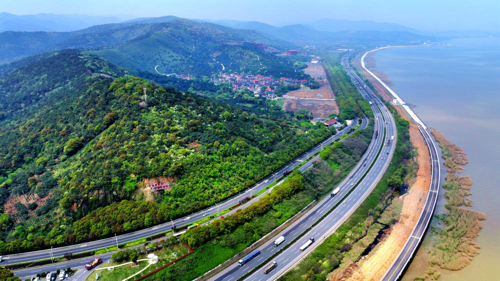??俯瞰104國道浙江湖州長興段(2024年4月10日攝,無人機(jī)照片)。