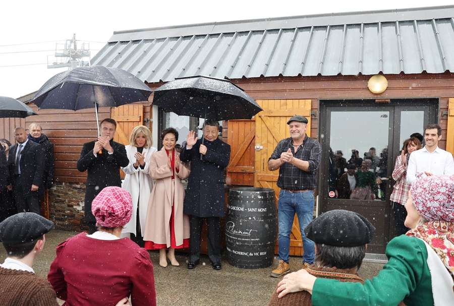 ??馬克龍和布麗吉特陪同習近平和彭麗媛離開圖爾馬萊山口返回塔布,并在機場舉行正式歡送儀式。兩國元首相約在北京再見。