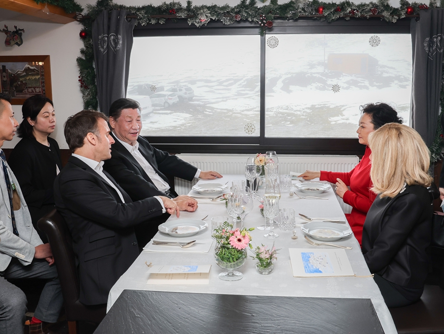 ??當地時間5月7日,應法國總統(tǒng)馬克龍?zhí)貏e邀請,國家主席習近平乘專機來到法國西南部上比利牛斯省訪問。在圖爾馬萊山口“牧羊人驛站”,習近平和夫人彭麗媛同馬克龍和夫人布麗吉特憑窗而坐,在輕松愉快的氛圍中就一些重要問題進行戰(zhàn)略溝通。新華社記者 姚大偉 攝