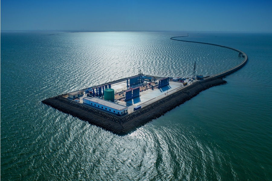 ??這是勝利油田青東5采油平臺(無人機照片)。新華社發(fā)