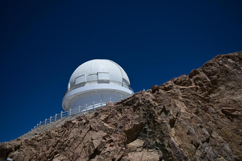 ??這是在青海省海西蒙古族藏族自治州茫崖市冷湖鎮(zhèn)賽什騰山拍攝的中國科學(xué)技術(shù)大學(xué)和中國科學(xué)院紫金山天文臺聯(lián)合研制的大視場光學(xué)成像望遠鏡——墨子巡天望遠鏡(2024年4月20日攝)。新華社記者 張龍 攝