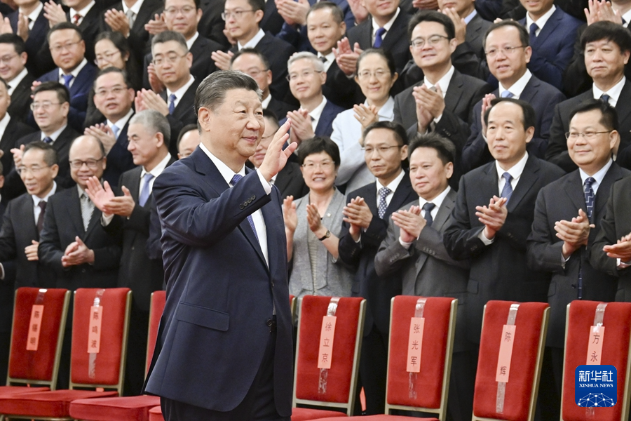 ??9月23日,黨和國家領導人習近平、李強、趙樂際、王滬寧、蔡奇、丁薛祥、李希等在人民大會堂接見探月工程嫦娥六號任務參研參試人員代表并參觀月球樣品和探月工程成果展覽。這是習近平等接見探月工程嫦娥六號任務參研參試人員代表。新華社記者 謝環(huán)馳 攝