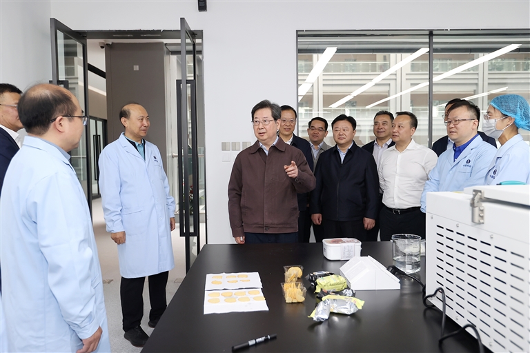 十月八日,省委書(shū)記樓陽(yáng)生到漯河市調(diào)研中原食品實(shí)驗(yàn)室技術(shù)創(chuàng)新、成果轉(zhuǎn)化等情況。 本報(bào)記者 董亮 蔡迅翔 攝