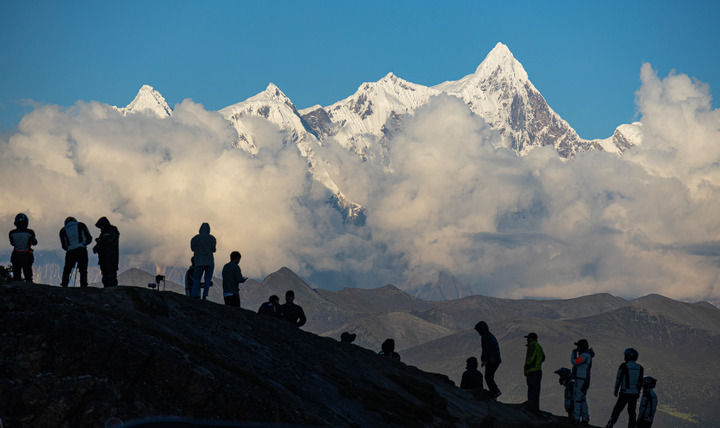 ??游客在色季拉山口的川藏公路邊觀賞南迦巴瓦峰風(fēng)光(2023年9月5日攝)。新華社記者 丁增尼達 攝