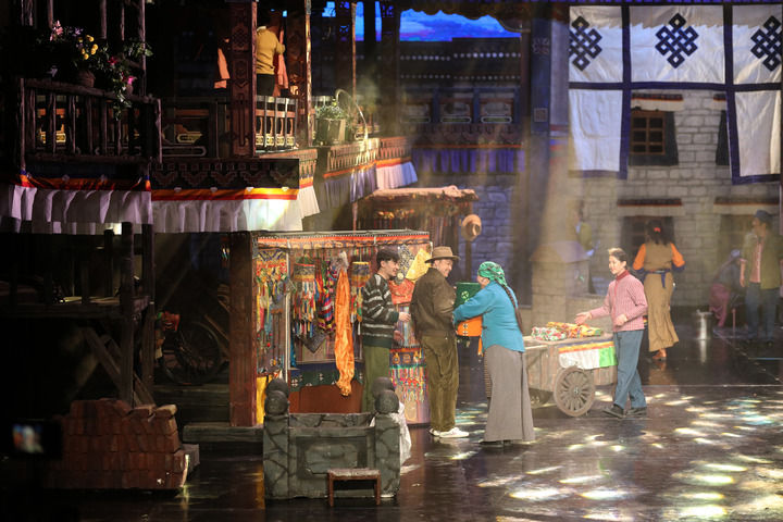 ??2022年3月23日,話劇《八廓街北院》在西藏自治區(qū)藏戲演藝中心上演。該劇由西藏自治區(qū)話劇團創(chuàng)作演出,以拉薩八廓街為背景,展現(xiàn)了一座多民族聚居院落的鄰里深情。新華社記者 姜帆 攝