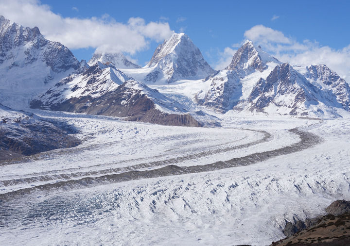??來古冰川位于西藏自治區(qū)昌都市八宿縣然烏鎮(zhèn)境內(nèi),因其外觀形態(tài)獨特壯美,成為川藏公路游客的打卡勝地(2024年12月18日攝)。新華社記者 丁汀 攝